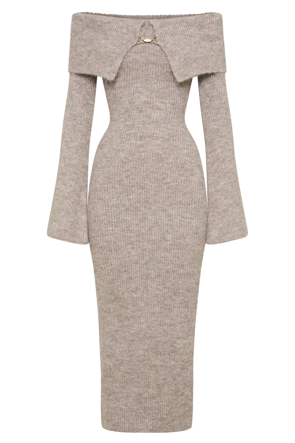 The Talia Off-Shoulder Knit Dress offers a refined balance of elegance and comfort. Designed with a soft knit fabric, it features a fold-over off-shoulder neckline that highlights the collarbone while maintaining a structured yet flexible fit. The slim silhouette enhances the natural curves, while the midi length adds a timeless touch.